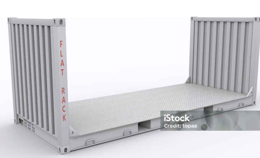 마지막으로는 FLAT RACK 컨테이너입니다. FLAT RACK 컨테이너와 앞서 설명드린 OPEN TOP 컨테이너는 사실 OOG(Out of Gauge) 컨테이너로 분류되는데요! 컨테이너 규격을 벗어난다는 점에서 공통점을 가지고 있습니다. OPEN TOP이 상단만 개방된 컨테이너였다면, FLAT RACK 컨테이너는 천장은 물론 긴 벽면도 제거된 컨테이너입니다. 컨테이너의 양끝쪽과 바닥만 있기 때문에 이게 컨테이너가 맞나 하는 생각이 들게 됩니다. 이 컨테이너는 역시 기존의 DRY 컨테이너와 OPEN TOP으로 커버가 되지 않았던 사이즈가 큰 중장비 화물을 선적하는데 주로 사용하게 됩니다.